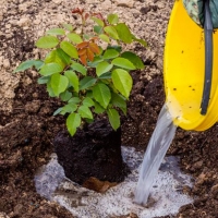 - Для кращої адаптації троянди на новому місці під час поливу використовуйте стимулятори коренеутворення.
