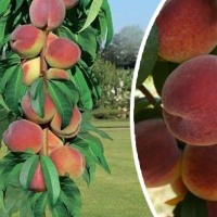 Це компактне дерево виростає до 180 см у висоту з діаметром крони до 60 см. Плоди вагою 140-150 г, іноді - до 200 грамів, жовтого кольору з карміновим рум'янцем. М'якоть соковита, ароматна та волокниста, щільна, солодка, а кісточка легко відділяється.Стійкість до курчавості листя середня.