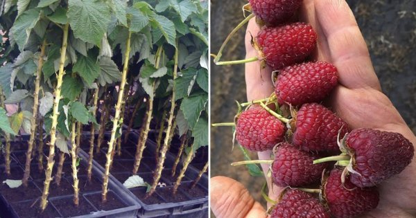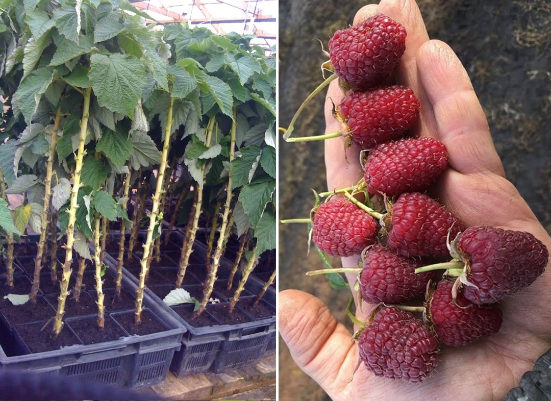 Ягоди красиві, яскраво червоні, блискучі, щільні, подовжені, тупокінцевими, дуже великі, вагою 4-8 г до 14 гр. Смак ягід хороший, десертний, солодкий з приємним «малиновим» ароматом. Мякоть соковита з нечисленними дрібними насінням. Ягоди універсального призначення. Кущ потужний 1.5 - 1.8 м. стисненого типу, формують по 10-12 пагонів заміщення і 5-6 кореневих нащадків, але вони не розповзаються по ділянці. Пагони безколючкові, прямостоячі (Малинове дерево).