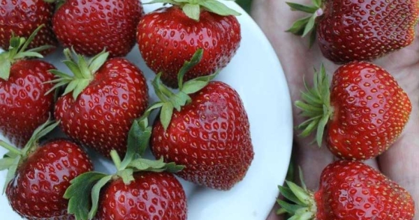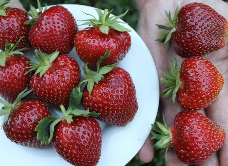Це особливо добре для пізнього сорту полуниці, так як сезон дозрівання ягід припадає на спекотний час. Також листя прикриває собою землю, що сприяє збереженню вологи. Плоди яскраво-вишневого кольору, великі, окрема полуничка важить 40-45 г, щільні. Крім того, у них приємний аромат, а значний вміст цукру забезпечує насичений смак. На кущі на початку червня утворюється до 5-8 квітконосних ріжків.