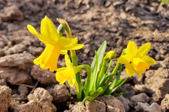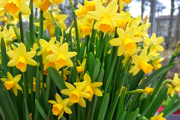 загострених біля країв листів та дрібних бутонів на вершині циліндричного стебла. Листя порівнюються по висоті з квітконосом. Бутон нарцису дуже яскравий, поділ на дві частини. Перша частина – це овальні нижні лепестки, а друга частина – дзвоноподібна корона. Запах у такого квітки дуже сладкий, але ненав'язливий.