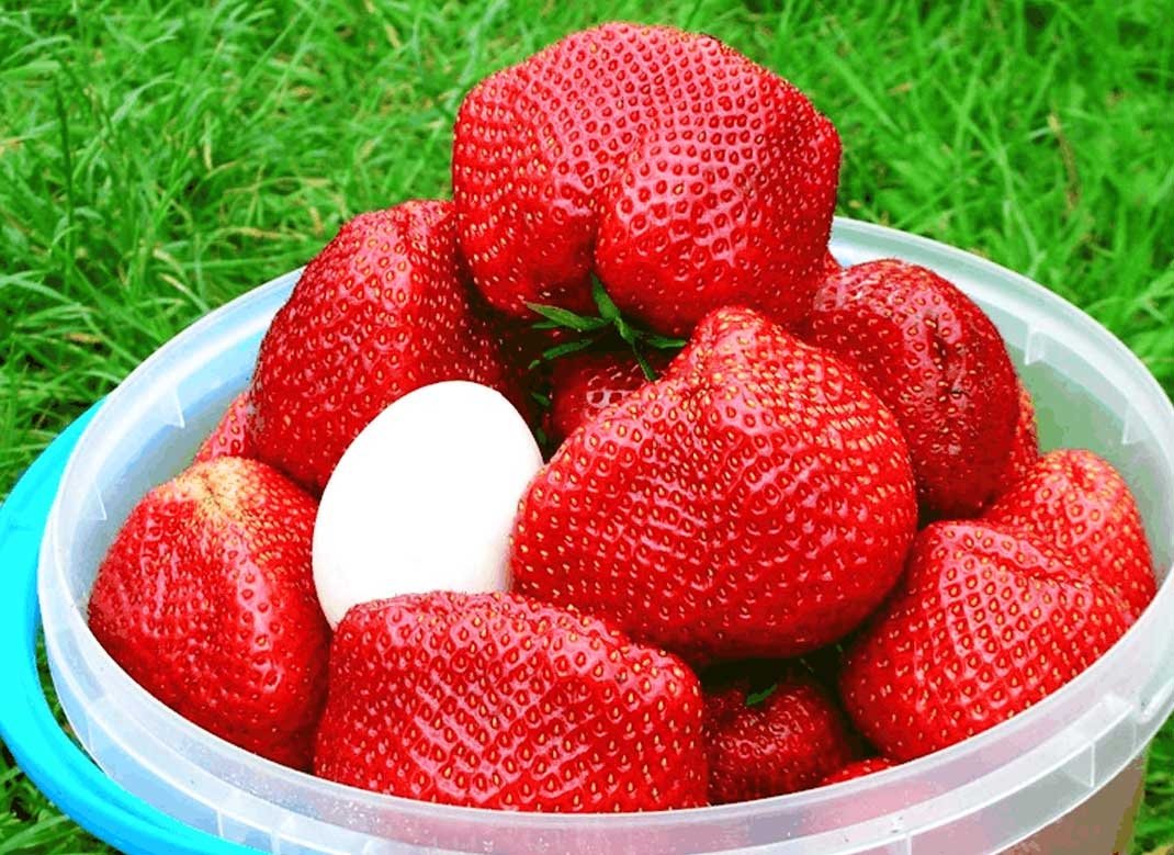 Розмір ягід аж до 70-90 г - інтенсивно-червоні, округлі і округло-гребёнчатой форми, дуже щільні, солодкі, що не піддаються гнилі.