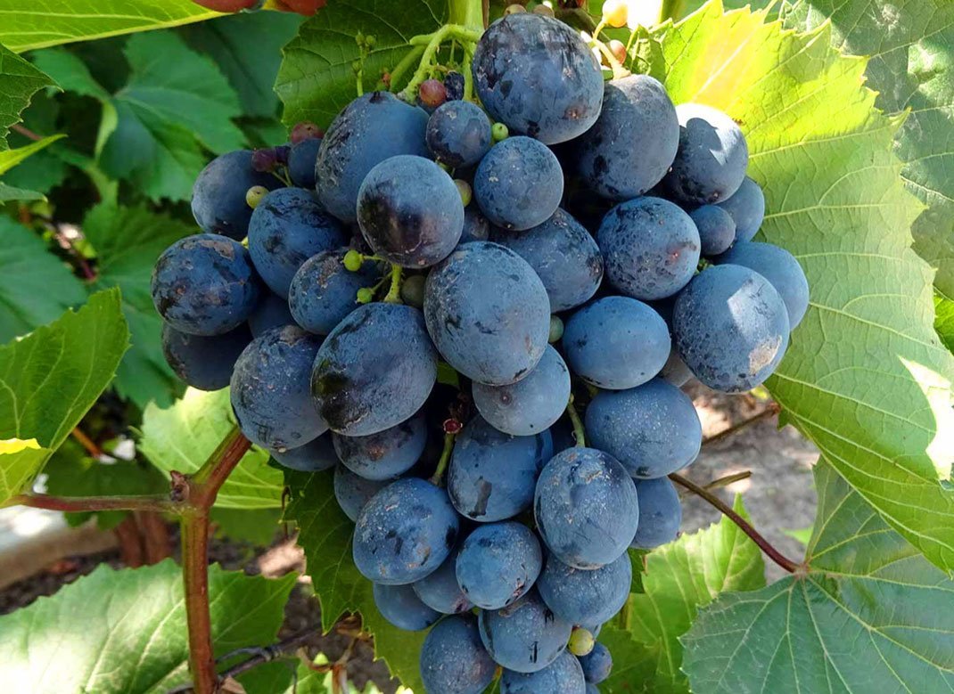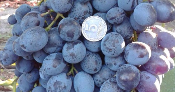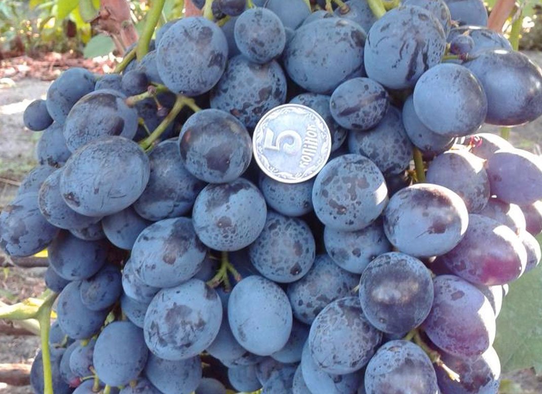 Растение сильнорослое, с крупными среднерассеченными листьями. Цветки имеют оба пола. Гроздь этого сорта велик и имеет цилиндрически-коническую форму. Ягоды поражают своей величиной (28-32 мм) и темно-синим цветом. Они обладают нежной мякотью и гармоничным вкусом, дополненным характерным ароматом сорта. Форма ягод в кисте может варьироваться от овальной до яйцевидной.