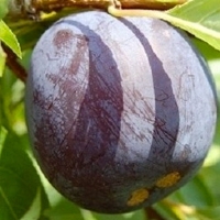 Плоди дуже великі 80-100гр, округлої форми. Шкірка тонка, в міру еластична, темно-фіолетового кольору з сизим восковим нальотом. М'якуш яскравого жовтого кольору, щільна, соковита з солодко- кислим смаком. Кісточка частково відділяється.