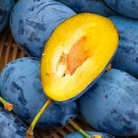 Плоди крупні, 50-70гр, овальної подовженої форми. Шкірка тонка, темно-фіолетового кольору з сильним восковим нальотом. М'якуш жовтого кольору, дуже соковита та смачна, приємного кисло-солодкого смаку. Кісточка відділяється дуже добре.
