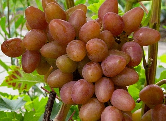 Відносно новий столовий сорт винограду з'явився на вітчизняних просторах виноградного вирощування - Аладдін. Дозріває за 120 днів. Квітка запилюється самостійно. Зростання кущів середнє. Грона щільні, конічні, вагою до 1 кг. Середня вага ягоди 8-9 грам.
