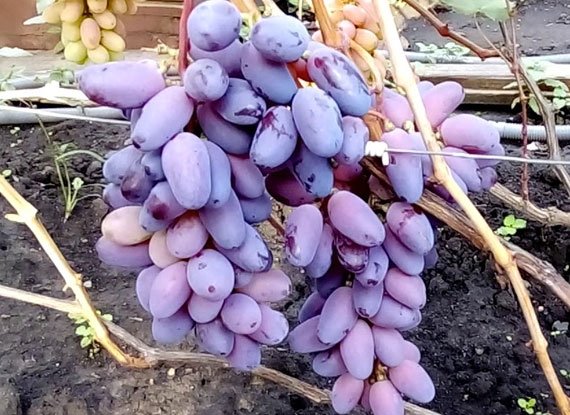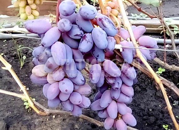 Кущі сильні, потужні. Квітка двостатева, запилювачі не потрібні. Грона винограду великі, масивні, неймовірно красиві, циліндричної або конусоподібної форми, вагою близько 700-1000 грам. Ягоди масою 12-15 грам схожі на пальчики.
