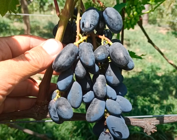 Ягода цього винограду велика з середньою масою від 14 до 18 грамів, має подовжено-овальну форму та темно-синій колір.