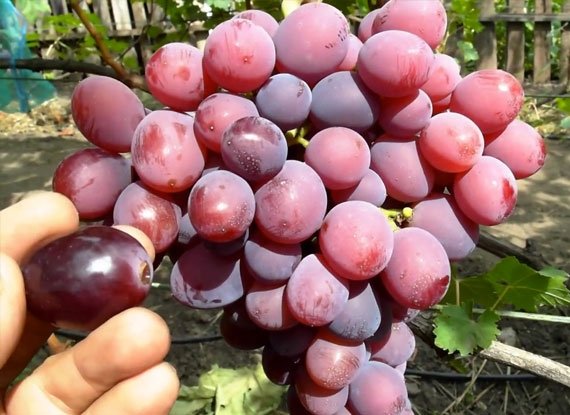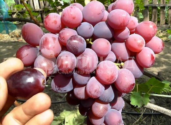Дозрівання відбувається за 120-130 днів. Рослини потужні, сильнорослі. Визрівання лози хороше. Квітка не потребує штучного запилення, так як він двостатеві. Вага конічних, помірнощільних грон коливається від 600 грам до 1 кг. Червоно-фіолетові ягоди великі, масою 12-18 грам. Дрібні виноградини не з'являються. М'якоть соковита, пружна, легка і приємна. Шкірочка цілком з'їдається.