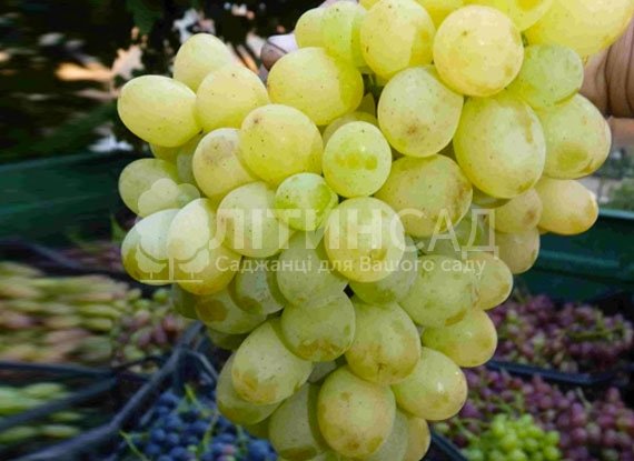 Період дозрівання становить 125-135 днів. Квітку запилювати не потрібно - вона двостатева. Маса конусоподібних, трохи пухких грон коливається від 500 грам до 1 кг. Великі, вагою 9-22 грама, ягоди овальні, жовто-зелені, набуває гарного відтінку в променях сонця. М'якоть м'ясиста і соковита, пружна, солодка і приємна. Шкірка винограду щільна, але без проблем з'їдається.