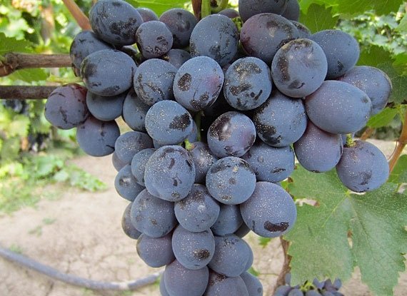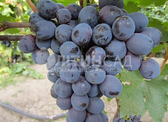 Ягоди винограду великі, насиченого фіолетово-синього кольору, з легким напиленням. Шкірочка щільна, але розривається без праці. М'якоть виноградин блідо-зелена, соковита і м'ясиста, є кілька кісточок. У смаку ледь вловимий мускатний присмак, а самі ягідки солодкі, але не дуже нудотні. Вага грона від 300 до 500 грам, при особливому догляді може досягати 2 кг.