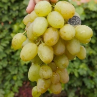 Монарх - це складний столовий гібрид аматорської селекції. Дозріває за 120-130 днів. Кущі сильні, витривалі. Рослина відмінно вкорінюється і визріває. Квітка не вимагає запилення. Грона великі, важкі, вагою 500-700 грам. За формою нагадують конус, щільність середня. Дрібні ягоди відсутні. Виноградини золотистого кольору з ефектом прозорості, еліпсоїдні, масою 12-15 грам. М'якоть солодка, соковита, присутній мускатний аромат. Грона, перебуваючи тривалий час на лозі, зберігають презентабельність і смак. Монарх зарекомендував себе як високоврожайний сорт винограду. Поширені хвороби переносить середньо, але нестійкий до антракнозу. Зимостійкість сорту -23 С. При більшому зниженні температури рекомендується укривання. Добре переносить транспортування і зберігає товарні якості. Саджанці винограду Монарх Ви можете придбати в нашому магазині.