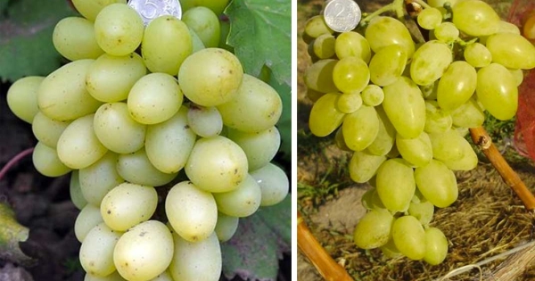 Грона великі, щільні, красиві, циліндро-конічної форми, в середньому набирають вагу до 800 г. Ягоди овальні, великі. Колір білий, на сонячній стороні утворюється золотава засмага. М'якоть досить щільна і соковита, шкірка теж щільна, але з'їдається. Смак гармонійний, приємний, з легкими нотками мускату.