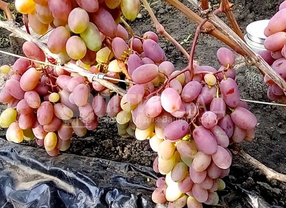 Кущі середньої сили росту, живці прекрасно вкорінюються. Квітка добре запилюється сам, так як він двостатеві. Циліндричні або конічні грона досить великі, вагою від 700 грам до 1,5 кг. Довгі об'ємні ягоди дуже великі, їх маса становить 16-22 грама.